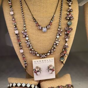 These Sorrelli earrings showcase a captivating cluster design with pink and opal white stones, set in a vintage-inspired floral pattern. The combination of iridescent and crystal-clear stones creates a romantic and elegant look, perfect for adding a touch of sophistication to any ensemble. This listing is for the earring cluster. I have several pieces in this wonderful Pink Peony collection!!