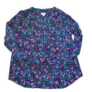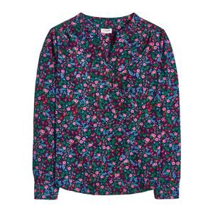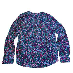 J Crew Popover Placket Blouse XS Ditsy Floral Navy Pink Cottagecore Tradwife Boho Long Sleeve Button up liberty dopamine dressing