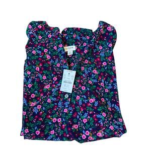 J Crew Popover Placket Blouse XS Ditsy Floral Navy Pink Cottagecore Tradwife