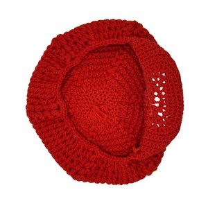 Add a pop of playful retro charm to your outfit with this hand-crocheted deep orange beret hat! Featuring a puffed crown, sturdy visor brim, and a bold pom-pom on top, this cozy cap is equal parts statement piece and cold-weather essential.