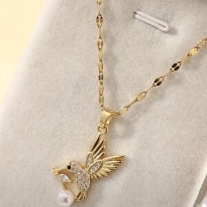 This stunning 18k Gold Plated hummingbird pendant necklace is adorned with sparkling crystals and a delicate pearl...A MUST have...NWT...Please message me with any questions