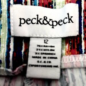 These were never worn!! I bought them, then had sugery and gained weight!! Darn!! Rayon 76%, Nylon 21%, and Spandex 3%. They are so yummy stretchy all over!! The most natural waist would be at 33”-35, but b/c of the stretch, the range and be even wider!! Experience the perfect blend of style and comfort with these Peck & Peck “bike” shorts, featuring a striking red and blue color scheme. Designed for a vibrant look, these shorts are ideal for casual outings or even actual cycling adventures. The lightweight fabric ensures breathability, making them a must-have for your summer wardrobe.
