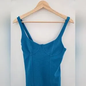 Serving body and bold color, this new with tags Zara mini dress is a hot girl summer essential. Designed in a rich teal blue hue, this fitted bodycon dress features a structured bustier-style top, sleeveless straps, and contour seaming that hugs all the right places. The soft stretch fabric gives it a comfortable yet curve-loving fit—perfect for date night, vacay, or a rooftop brunch.