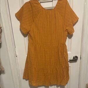 This relaxed and tiered dress from Universal Thread features a vibrant yellow hue and short sleeves, offering a comfortable and stylish fit. The lightweight fabric with vertical textural details adds a touch of elegance, making it perfect for casual outings. It is a perfect light dress for summer!