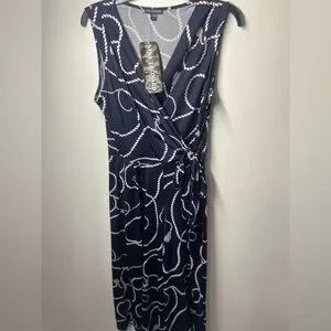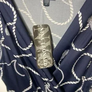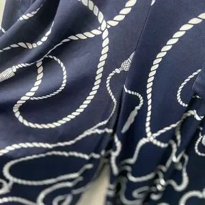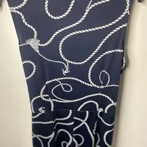 Nina Leonard Navy and White Rope Print Jumpsuit