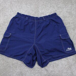 L.L. Bean Cycling Shorts Women Large Blue Inner Padded Cargo Pocket w/ 7" inseam