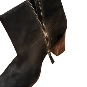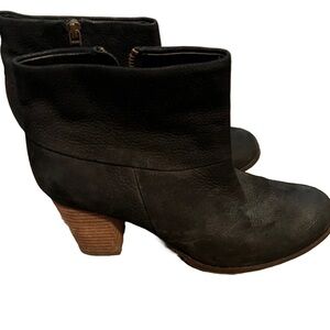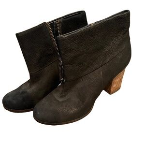 These Cole Haan ankle boots in black offer a sleek and minimalist design, featuring a side zipper closure and a comfortable chunky heel. The boots are crafted for versatility, making them a perfect choice for various occasions. Sold as pictured used.