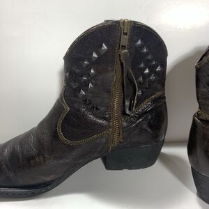 Born Leather Textured Studded Ankle Cowboy Western Boots Size 9.5 Womens. Great Preowned condtion with normal wear. One of the zippers looks a little weird, but it does zip with ease. Please see pictures for over all quality.
