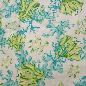 J Jill Love Linen Aqua Green Shift V Neck Dress L Petite Sea Turtle Coral Print