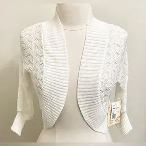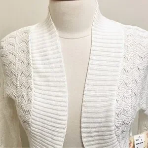 Derek Heart Vintage White Crochet Open Knit Long Sleeve Cropped Cardigan Size L