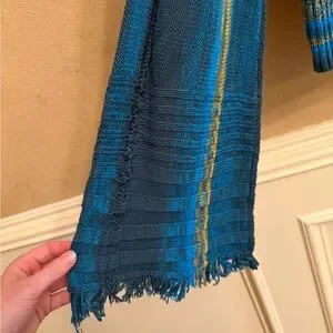 This stylish cropped turtleneck sweater by Free People showcases a bold blue and yellow striped design. The ribbed texture adds a touch of sophistication, while the cropped length offers a modern twist. Perfect for a casual yet chic look, this sweater is a must-have for any contemporary wardrobe.