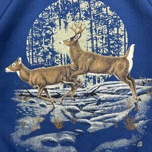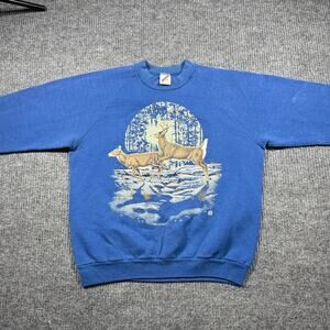Vintage Reindeer Nature Sweatshirt Mens L Blue 90s Animals USA Made