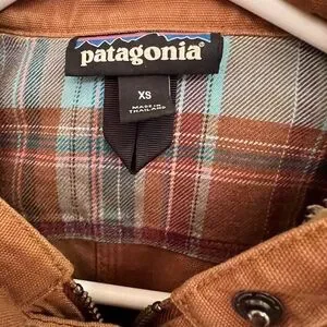 Patagonia Brown Jacket with Blue and Brown Plaid Interior