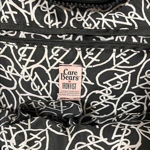 This Iron Fist crossbody bag features a playful design with cartoon-style cats in vibrant blue and pink hues. Its structured shape and durable fabric make it perfect for everyday use, adding a fun touch to any outfit. Includes matching wallet. Both the bag and wallet are in great pre-owned condition.
