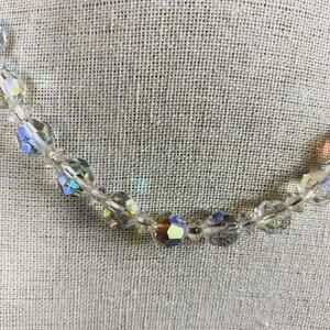 Vintage 1950s Mid Century Choker Necklace Clear Crystal Beads Adjustable Length