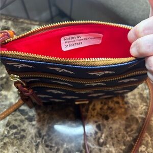 Dooney & Bourke Blue and Brown Messenger Bag with Leather Trim