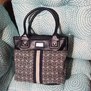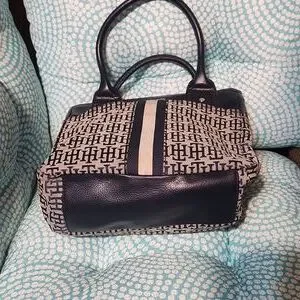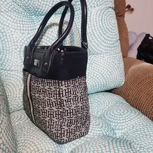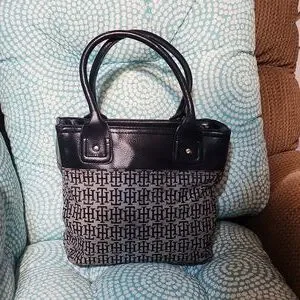 Tommy Hilfiger Vintage Black and White Tote Bag with Monogram Design