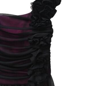 * fitted ruched bodice, and fabric flowers that run down the strap to the waist in the front of the dress