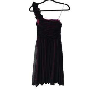 One-shoulder black minidress. Overall, in very good condition, with the exception of a small hole on the lining (see photo); from smoke-free home.