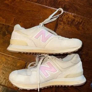 New Balance Off-White and Light Pink Sneakers