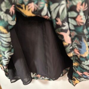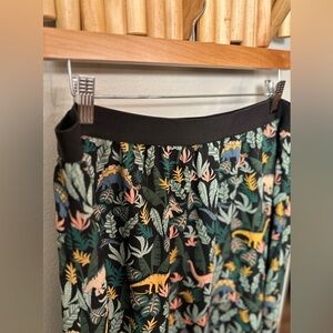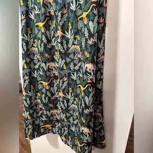 This eclectic and fun Modcloth midi skirt showcases whimsical dinosaurs and jungle foliage. This skirt is fully lined, very flattering and lightweight, and features an elastic waist for comfort. Other than the waistband, this skirt does not have any stretch. There is no materials tag but I would assume this is hand wash only. It has been worn only a few times and is in excellent used condition. This skirt has proven to be quite the conversation starter! π¦πΏπ¦