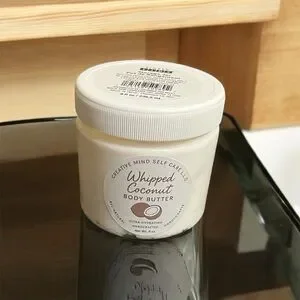 Indulge in a luxurious bath and body experience with this whipped body butter designed to deeply moisturize and nourish your skin. Its minimalist, wide-mouth container ensures easy access and adds a touch of elegance to your skincare routine. Perfect for those who appreciate a simple yet effective moisturizing solution. Ingredients are shea butter, cocoa butter, coconut oil, and essential oil