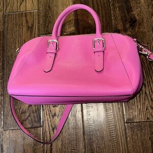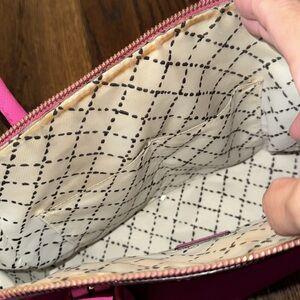 Normal wear, see last 2 photos for stain inside the bag, no other flaws.Chic and stylish pink handbag perfect for any occasion. Elevate your outfit with this versatile accessory.