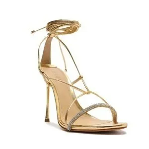 Schutz Gold Adeline CrystalEmbellished Metallic LaceUp Sandals