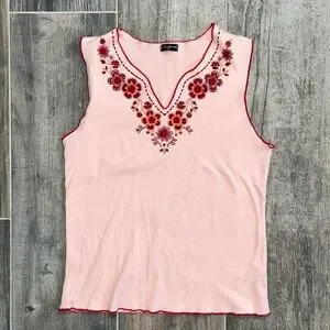FANG Y2K Floral Top in excellent pre owned condition with no flaws! No rips or stains! Flowers have beads in design and going around close to the trim! V neck cut.