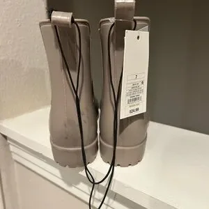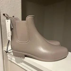 A New Day Chelsea Rain Boots Women's US 7 Taupe Waterproof Round Toe Slip On