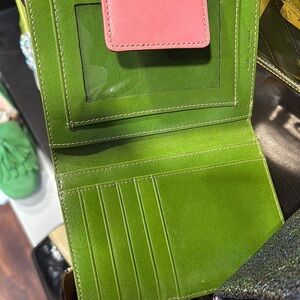 This chic pink wallet from Kate Spade features a glossy finish that adds a touch of elegance to any outfit. Its compact and structured design makes it a versatile accessory, perfect for making a statement while remaining practical for everyday use.