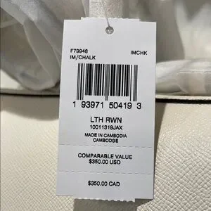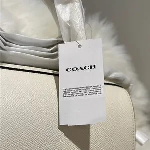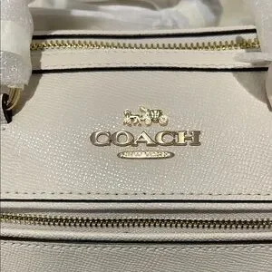 This Coach satchel in pristine leather exudes elegance with its structured design and luxurious gold-tone details. Crafted from high-quality materials, it offers a sophisticated look perfect for daily use. The minimalist aesthetic and refined craftsmanship make it a timeless addition to any wardrobe. Color is Chalk.