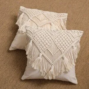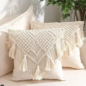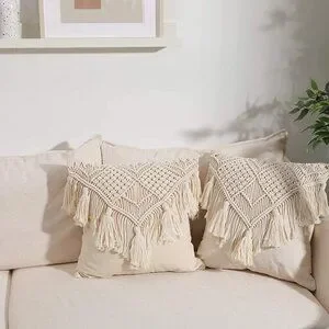Tassel Macrame Throw Pillow Boho Indie Case Cushion Cover for Bed/Sofa/Patio