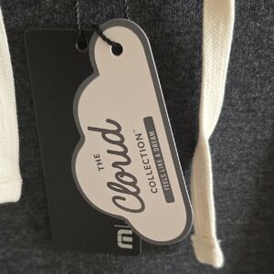 Never worn. New Condition. Super Soft! Stylish dark gray hoodie from the Cloud Collection. Features cream drawstrings for a chic look.