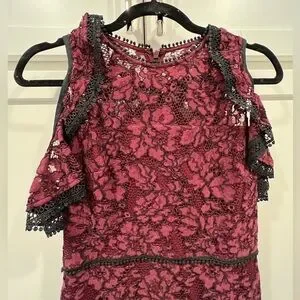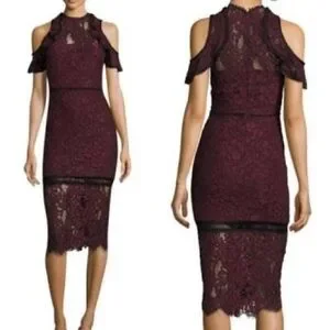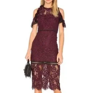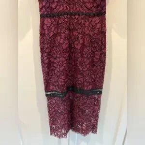 Alexis (Revolve) Evie Burgundy Lace Off Shoulder Midi Dress. Size XS.