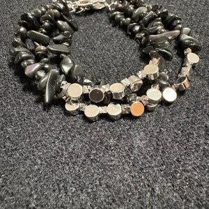Kinsley Armelle Black Obsidian and Silver Colored Bead Multi-Strand Bracelet
