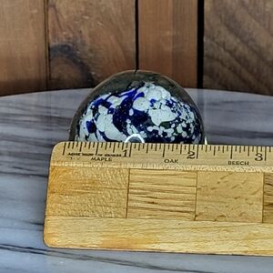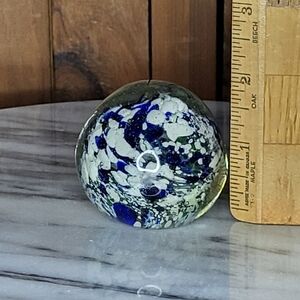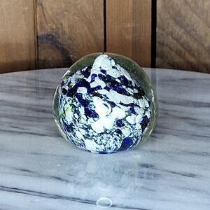 Enhance your home decor with this stunning artistic glass sphere. Featuring a captivating blend of blue and white, this piece adds a touch of elegance to any space. Perfect for art enthusiasts and collectors. No chips or cracks and is in excellent original condition. 1 of a kind $25