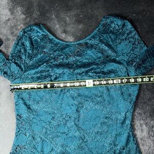This elegant teal lace dress is perfect for any occasion. Its intricate design and flattering fit make it a must-have in your wardrobe.