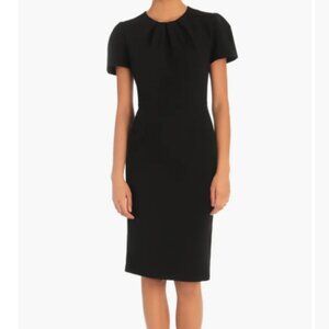 Maggie London Black Pleated Neck Short Sleeve Sheath Dress