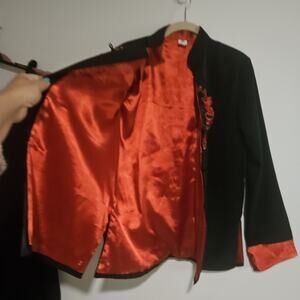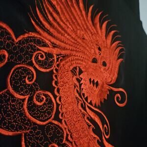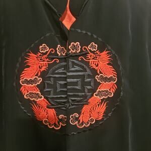 Silk Vintage Black & Red Dragon Kimono Style Long Sleeve Top S Vietnam Minh Than