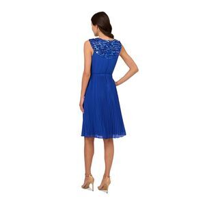 ADRIANNA PAPELL Womens Blue Lined Sleeveless Above The Knee Fit + Flare Dress 4