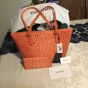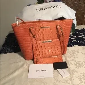 ๐น6X๐นHOST PICK- BRAHIM MEDIUM GENUINE LEATHER ASHER POPPY MELBOURNE BAG ALONG WITH MATCHING WALLET. BAG HAS ADJUSTABLE HANDLES 10.5โ, FOOTED BOTTOM, GOLD HARDWARE, INTERIOR ATTACHED KEY HOLDER. BACK SLIDE POCKET AND TWO ORGANIZERS AND ZIP POCKET INSIDE. BRAHIM LEATHER WALLET HAS SNAP CLOSURE ALONG WITH BACK ZIP POCKET/ 7.5โ W X 4โ H. BAG NWT- WALLET NWOT. DUST BAG INCLUDED