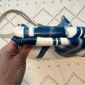 One of a kind hand-dyed blue and white leather bag by Local, Austin Leather Artist - One Five Trading. Thick, excellent quality bag.