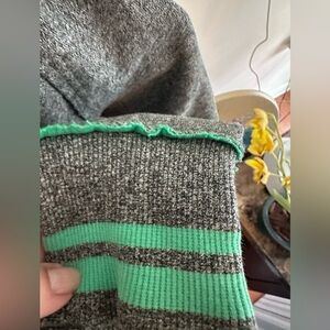 Stylish gray hoodie with green accents. Full zip front. Comfortable and cozy.