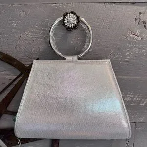 Top handle and removable crossbody chain.