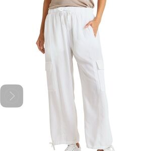 Elevated but comfortable tan cargo pants Kamryn by Splendid. Featuring a relaxed fit and an elastic waistband for easy wear. Crafted from a lightweight fabric, they are perfect for casual outings or lounging at home.