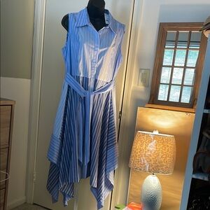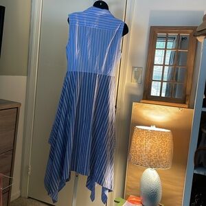 Gracia Blue and White Asymmetrical Sundress with Dress Shirt Collar