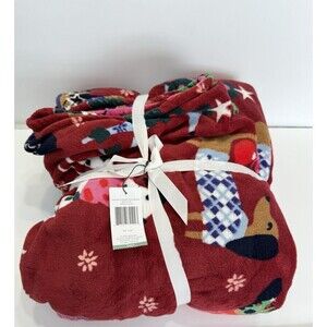 Vera Bradley Holiday Hounds Oversized Throw Blanket 94” X 66” NWT Dog Christmas