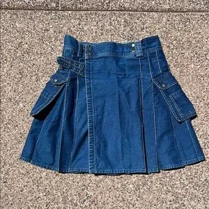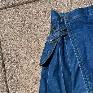 Rare denim utility kilt in waist size 36. Fits men waist 30-34 with two sets of adjustable snaps. Heavy cotton with two utility pockets. #grunge #streetwear #irish #scottish #utility #athletic skirt