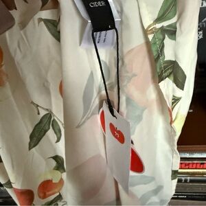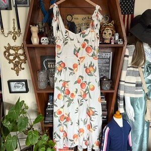 This Cider sundress showcases a delightful ruffled design with a tie front and a sweetheart neckline, ideal for casual or resort wear. The sleeveless, midi-length dress is crafted from a light, airy fabric, making it perfect for warm weather. Its soft white and cream palette adds a touch of elegance to your summer wardrobe.